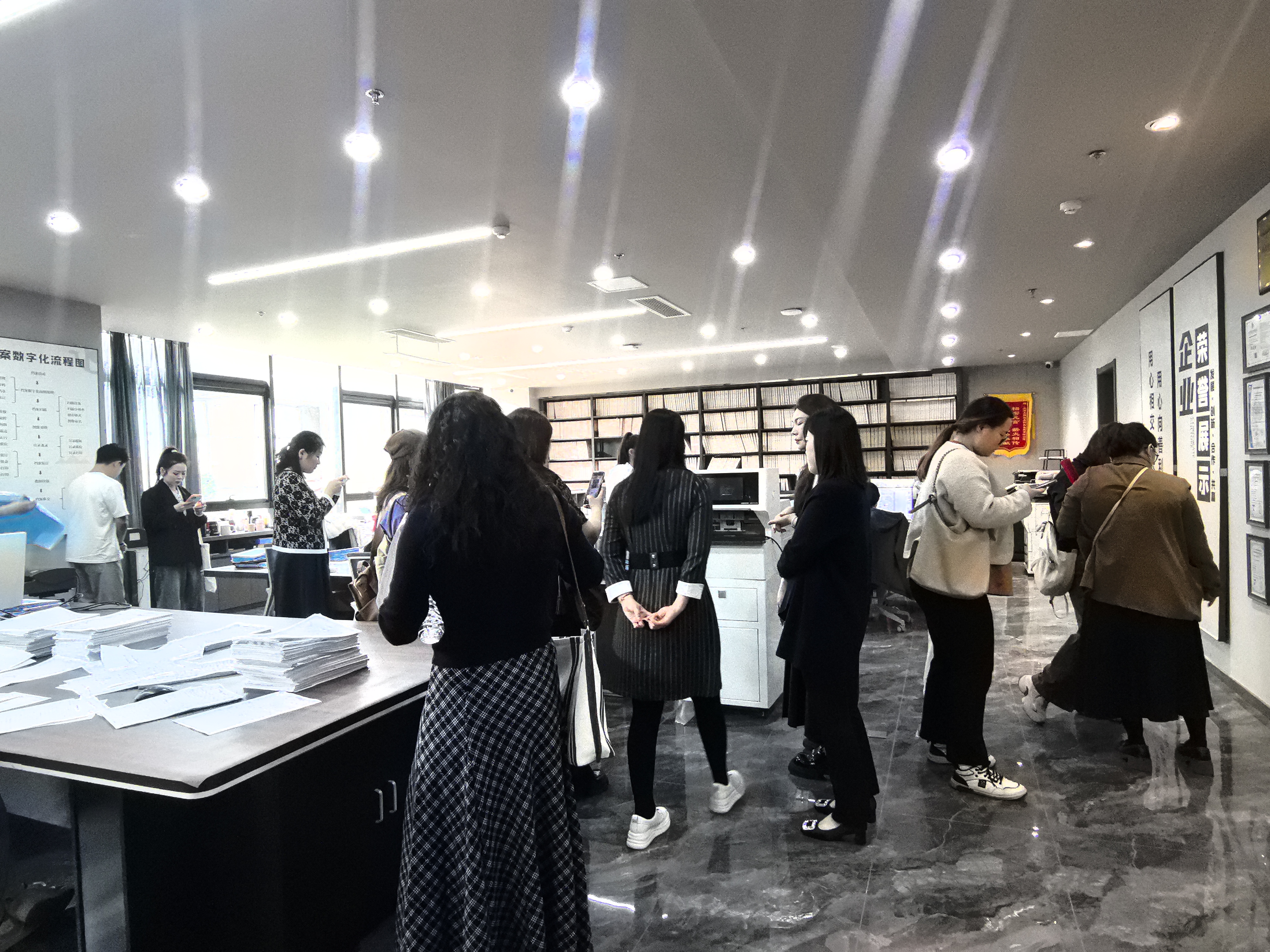 实操环节中,学员们分组实操、互帮互学,在老师的现场指导下,亲自动手完成各类档案的整理、编号、编目及装盒操作,熟练掌握档案整理全流程规范;同时,培训还聚焦档案数字化加工核心技能,解读纸质档案数字化规范,演示档案数字化加工流程,并组织学员前往城建档案数字化建设及智慧档案一体化建设现场参观学习,直观感受档案管理现代化、智能化发展趋势,拓宽专业视野。